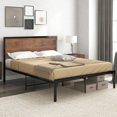 4FT6 Metal Platform Bed Double Bed Frame with Wood Headboard for Very well made.