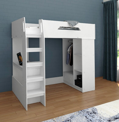 Single High Sleeper Bed with Desk Storage Hanging Area White Very well made.