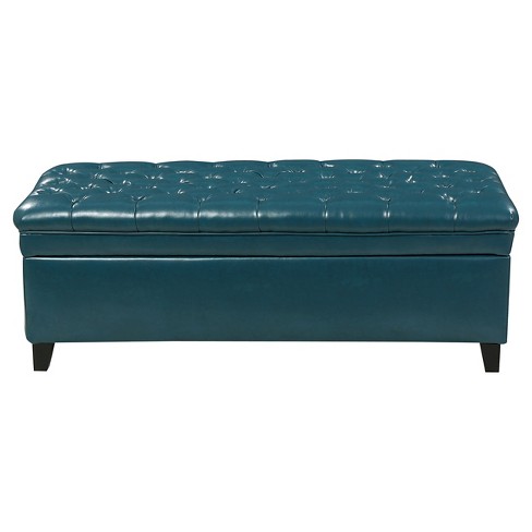 Juliana Tufted Faux Leather Storage Ottoman Dark Teal Very well made.