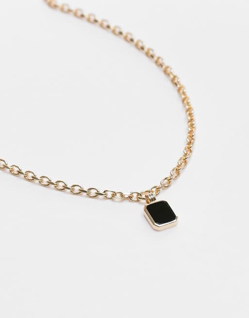 Topshop 14k gold plated black stone charm chain necklace Very well made.