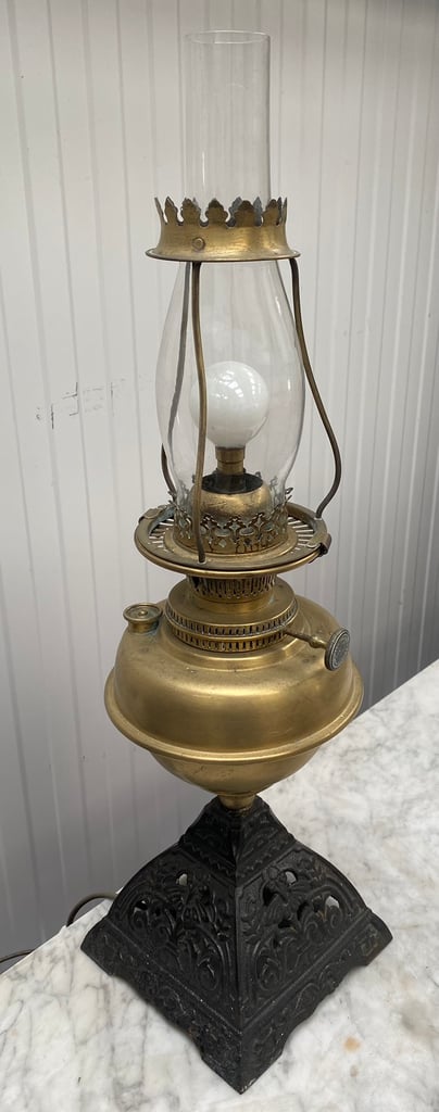 Brass retro looking oil lamp electric lamp Very well made.